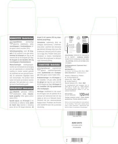 - Chaste Tree (Vitex agnus-castus) fruit liquid extract or tincture concentrated 1:10. 100% natural, alcohol and sugar free. MADE IN ITALY.