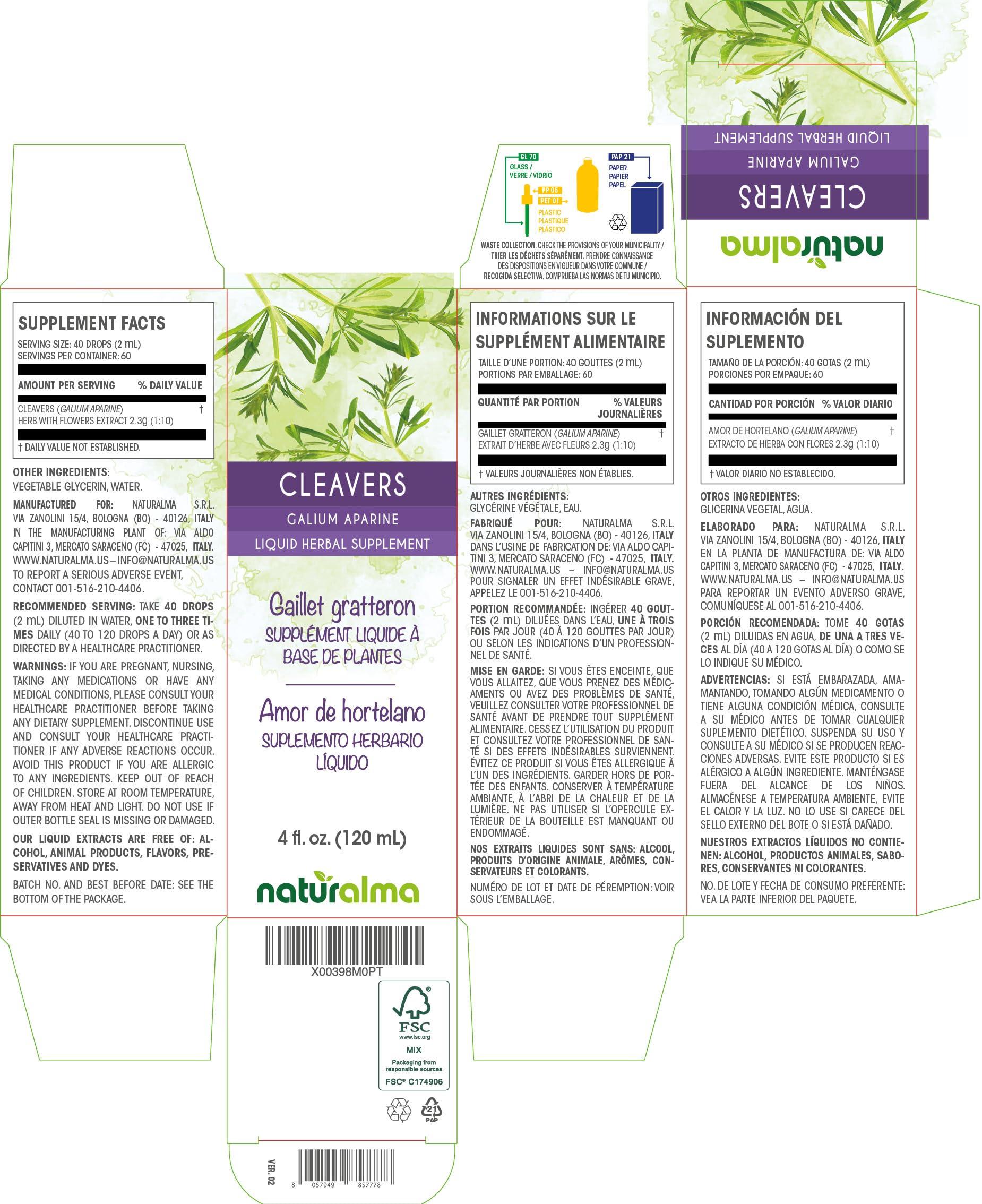 - Cleavers or clivers (Galium aparine) herb with flowers liquid extract or tincture concentrated 1:10. 100% natural, alcohol and sugar free. MADE IN ITALY.