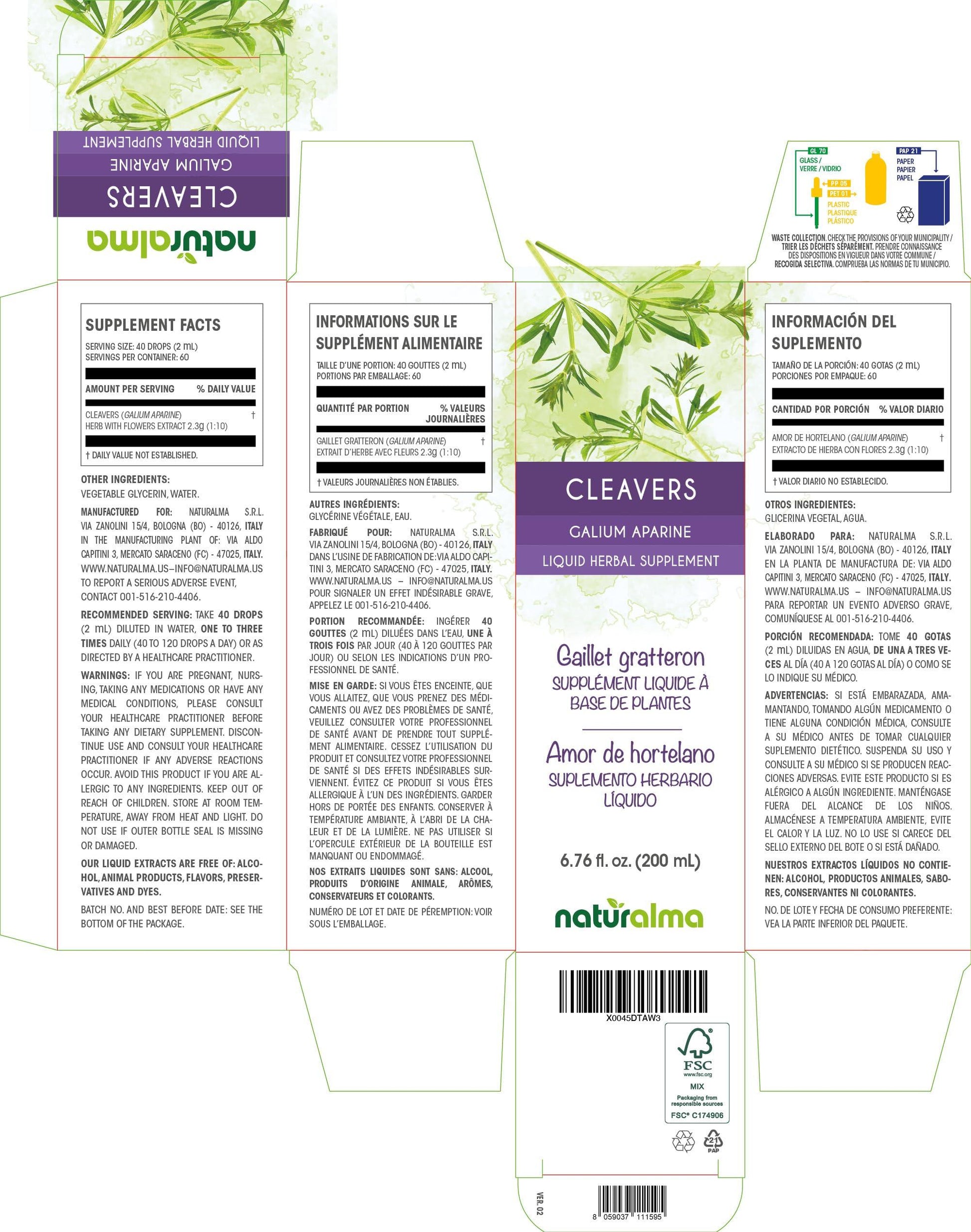 - A NATURAL AID: Cleavers or clivers liquid herbal supplement in drops. 40 drops (2 ml) contain 2.3 g of Cleavers or clivers extract (1:10). Glyceric macerate or pure fluid extract of Cleavers or clivers (Galium aparine) herb with flowers in drops.