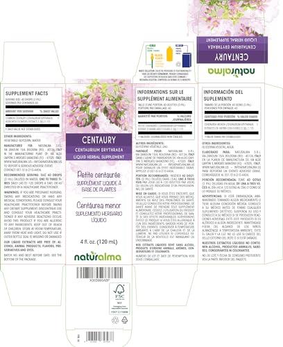 - A NATURAL AID: Common centaury or European centaury liquid herbal supplement in drops. 40 drops (2 ml) contain 2.3 g of Common centaury or European centaury extract (1:10). Glyceric macerate or pure fluid extract of Common centaury or European centaury (Centaurium erythraea) herb with flowers in drops.