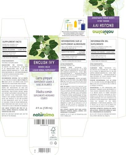 - A NATURAL AID: Common ivy or English ivy liquid herbal supplement in drops. 40 drops (2 ml) contain 2.3 g of Common ivy or English ivy extract (1:10). Glyceric macerate or pure fluid extract of Common ivy or English ivy (Hedera helix) leaf in drops.