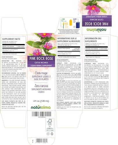 - A NATURAL AID: Pink rock rose liquid herbal supplement in drops. 40 drops (2 ml) contain 2.3 g of Pink rock rose extract (1:10). Glyceric macerate or pure fluid extract of Pink rock rose (Cistus incanus) herb in drops.