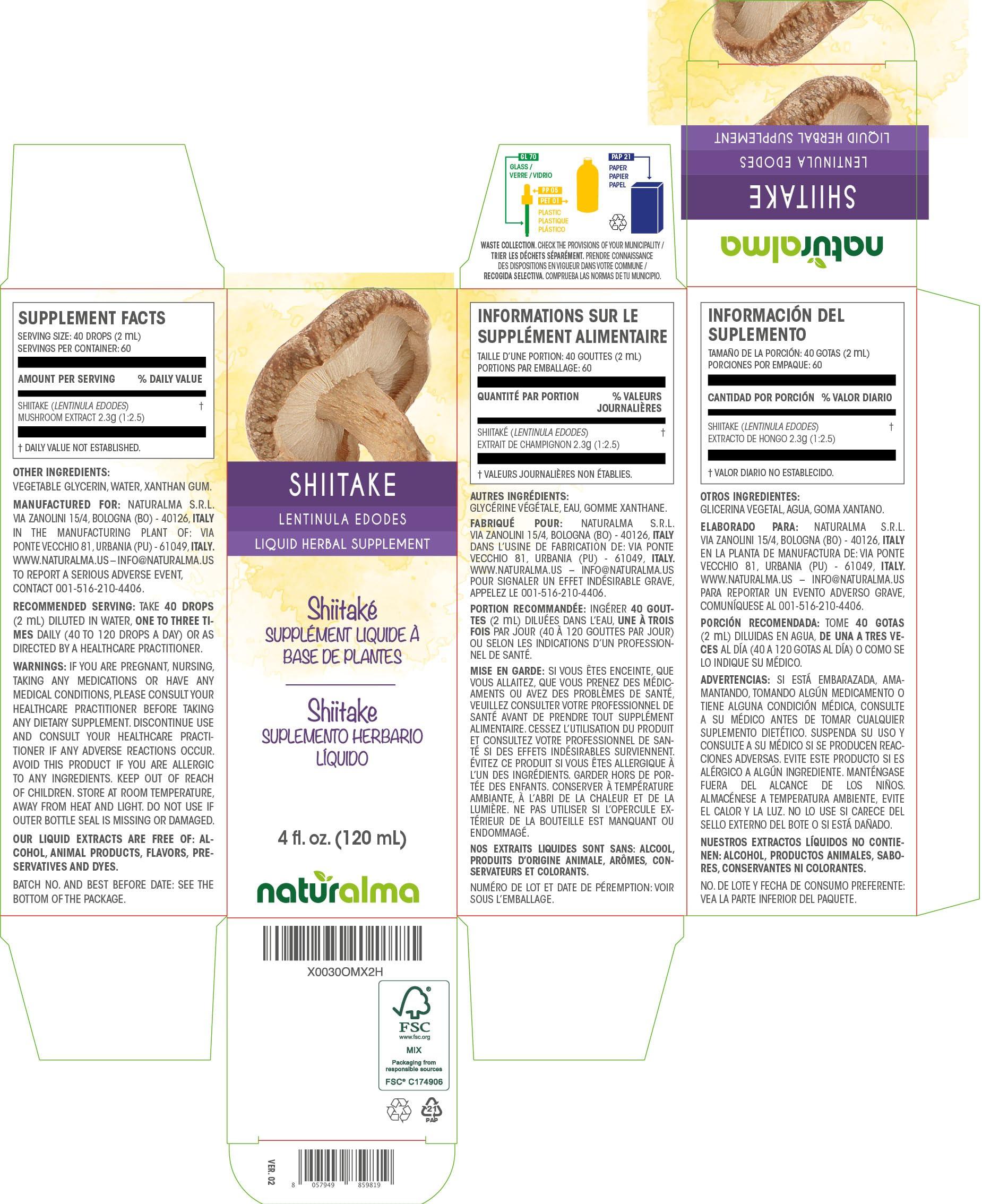 - A NATURAL AID: Shiitake liquid herbal supplement in drops. 40 drops (2 ml) contain 2.3 g of Shiitake extract (1:2.5). Glyceric macerate or pure fluid extract of Shiitake (Lentinula edodes) fungus or mushroom in drops.