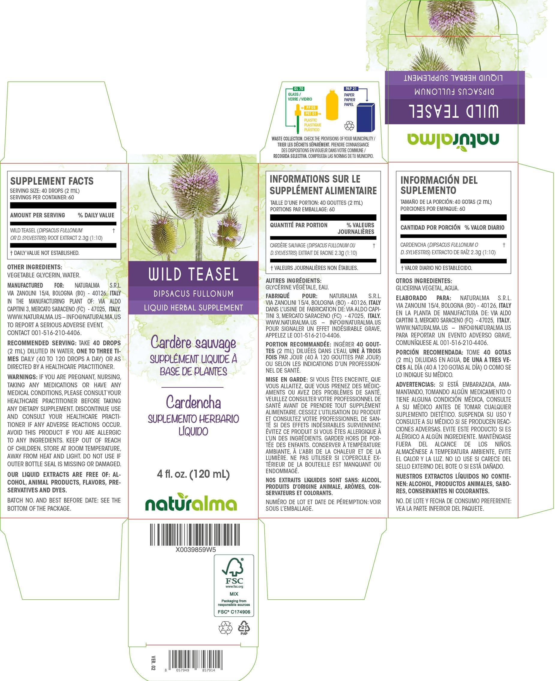 - Wild teasel or Fuller's teasel (Dipsacus fullonum or D. sylvestris) root liquid extract or tincture concentrated 1:10. 100% natural, alcohol and sugar free. MADE IN ITALY.